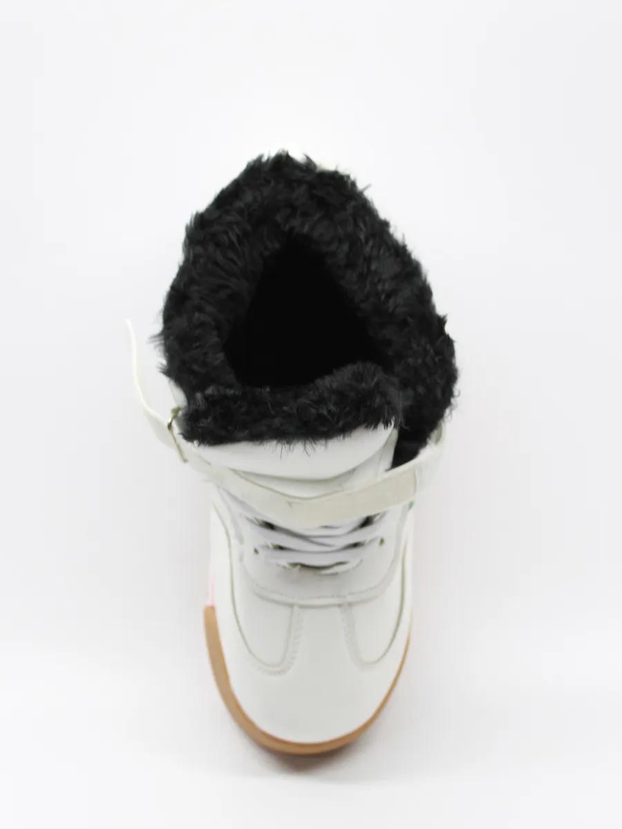 - Удобные зимние полуботинки выполнены из искусственной кожи, подкладка из теплого искусственного шерстяного меха. Ботинки можно смело сочетать с любым образом: от спортивного до классического. Данная модель в нежном стиле для девочки в качестве обуви для походов в школу, детский сад.Стильные высокие кроссовки с гибкой подошвой и хорошей амортизацией помогают держать баланс веса при ходьбе не скользить. Шнуровка позволяет регулировать полноту ноги в обуви.Рекомендуемый температурный режим для ношения зимой весной и осенью до -8 С.