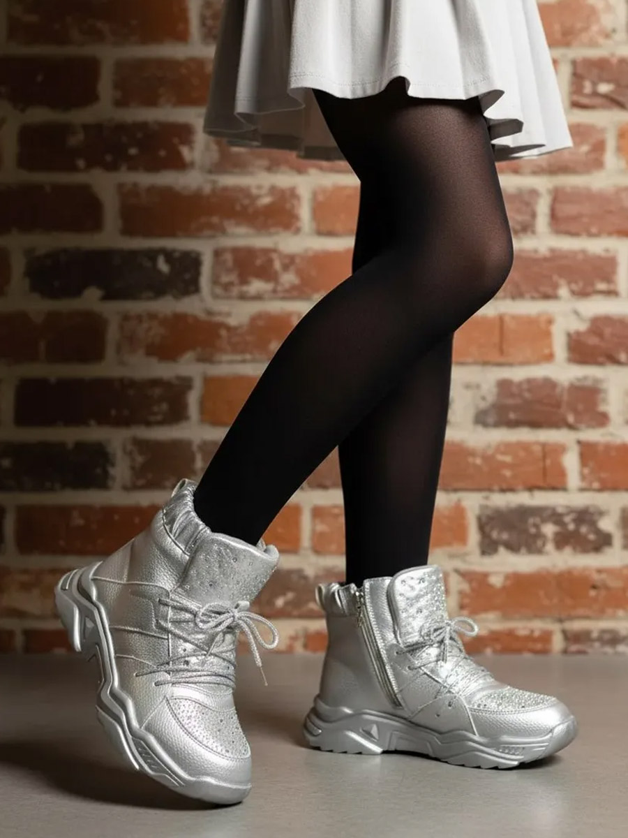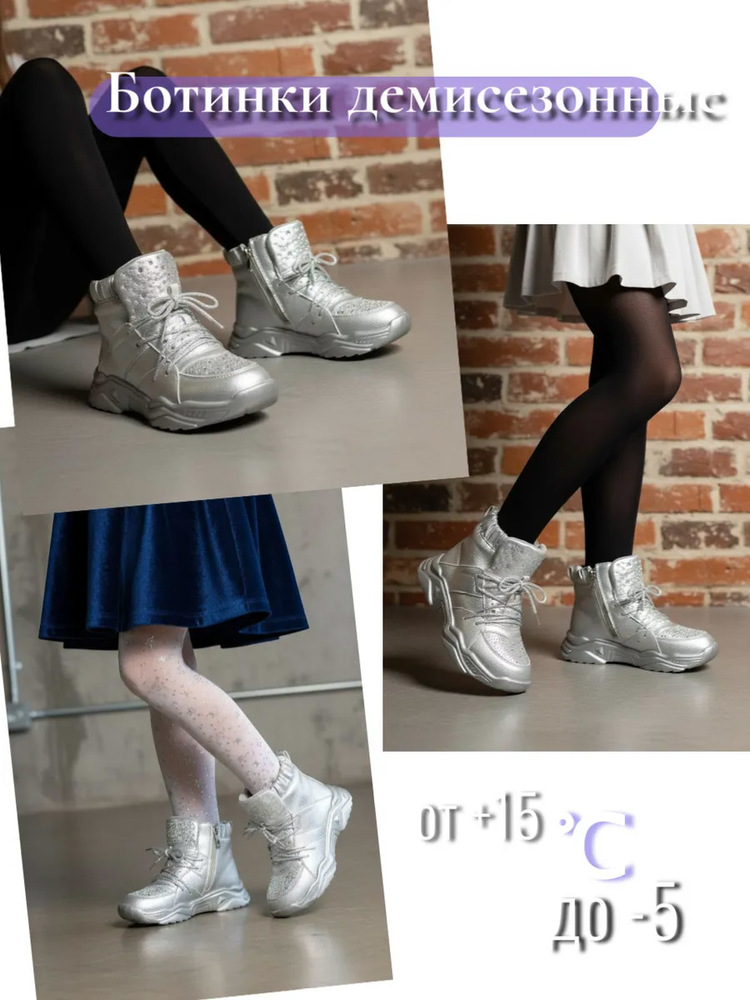- Эти модные полуботинки -в серебряном цвете настоящая находка для девочек школьного возраста. (рекомендуемый температурный режим ношения при температуре на улоице от 0 до +15 градусов С,) Идеальное сочетание стиля и функциональности в теплую весну и осень. Верх нарядных ботинок выполнен из искусственной кожи, украшенный камнями что придает им элегантный праздничный внешний вид Подкладка из текстиля флиса добавляет комфорта и позволяет ногам дышать во время их использования. Гибкая подошва из ТПР обеспечивает отличное сцепление с поверхностью и устойчивость на различных типах поверхностей, что делает эти ботинки идеальным выбором для активных детей. Рекомендуемый температурный режим использования при плюсовой уличной температуре.